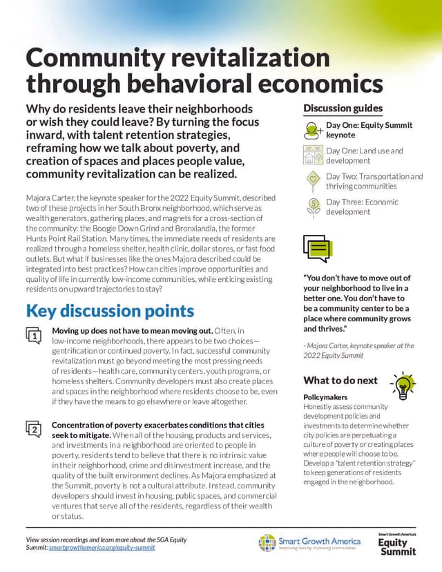 Smart growth is an approach to community design that connects housing, transportation, and land use to create healthy, prosperous, and resilient neighborhoods.